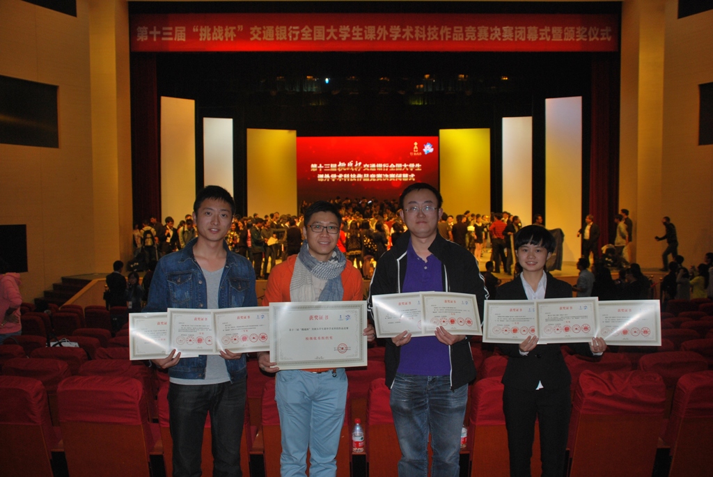 1013-17日,由共青团中央、中国科协、教育部、全国学联和江苏省人民政府共同主办的第十三届“挑战杯”全国大学生课外学术科技作品竞赛决赛在苏州举行。在本届竞赛中我校学子再获佳绩,有3件作品获二等奖、3件作品获三等奖,以团体总分180分再次成为下届竞赛的发起高校,学校获校级优秀组织奖。此外,本届竞赛新增了“累进创新奖”与“交叉创新奖”评选,我校获得“累进创新奖”金奖1项,“交叉创新奖”三等奖1项。